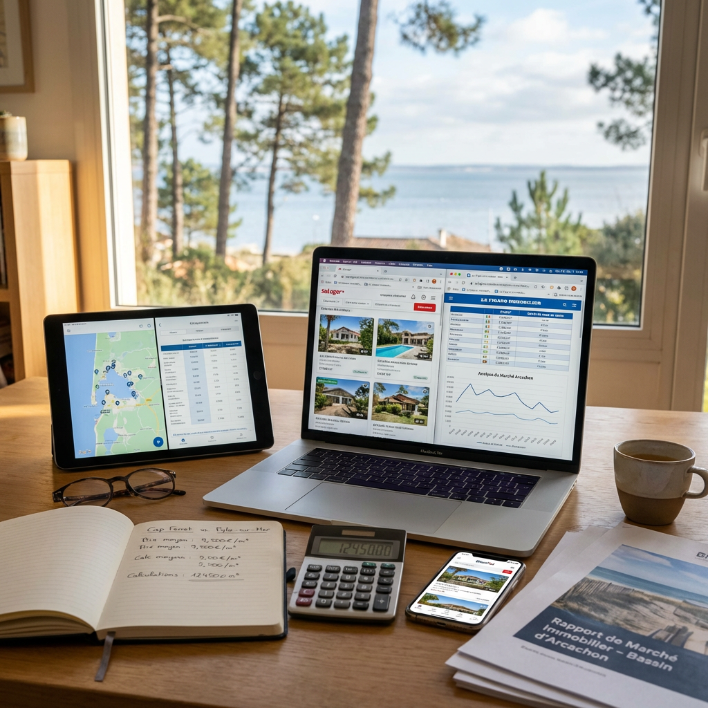 – Données terrain et observations locales : transactions, délais et comportements observés sur le Bassin d’Arcachon (Arcachon, La Teste-de-Buch, Gujan-Mestras), 2025–début 2026.