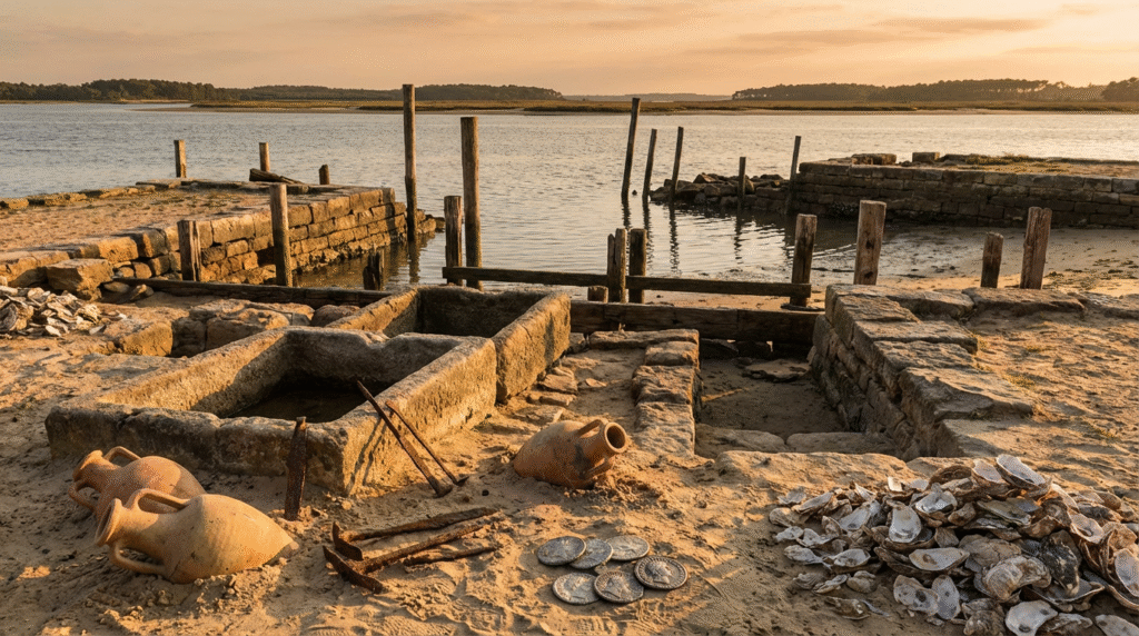 Des amphores, des pièces de monnaie, des outils métalliques… tout indique que le Bassin n’était pas une zone périphérique de l’Empire, mais un lieu d’activité commerciale intense. Et ce n’est pas étonnant : dès le IVe siècle après J.-C., les huîtres du Bassin d’Arcachon étaient exportées jusqu’en Italie pour garnir les tables patriciennes.